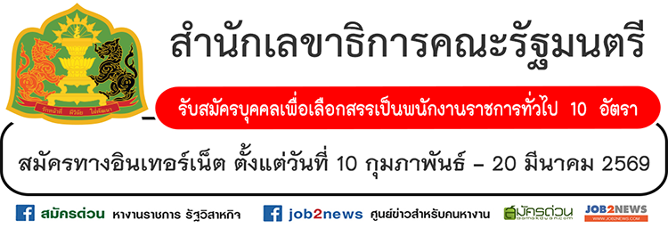 ประกาศสำนักเลขาธิการคณะรัฐมนตรี เรื่อง รับสมัครบุคคลเพื่อเลือกสรรเป็นพนักงานราชการทั่วไป โดยมีรายละเอียดดังต่อไปนี้