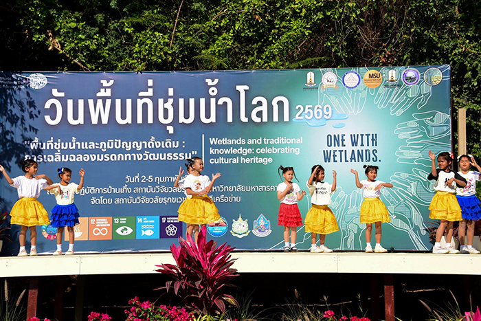 สถาบันวิจัยวลัยรุกขเวช มหาวิทยาลัยมหาสารคาม ร่วมกับภาคีเครือข่าย จัดกิจกรรมรณรงค์เนื่องในวันพื้นที่ชุ่มน้ำโลก ประจำปี 2569 มุ่งเน้นการเชื่อมโยงมรดกทางวัฒนธรรมและภูมิปัญญาท้องถิ่นเข้ากับการอนุรักษ์ทรัพยากรธรรมชาติ ตามเป้าหมายการพัฒนาที่ยั่งยืน (SDGs)