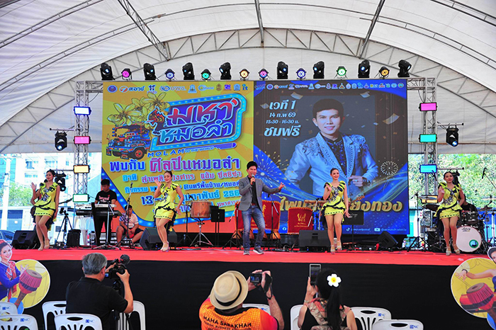 จากนั้น มุ่งหน้าสู่พื้นที่จัดงานมหาหมอลำเฟสติวัล เพื่อสัมผัสการแสดงอันหลากหลาย ตั้งแต่ศิลปินแห่งชาติ คณะหมอลำชื่อดังจากทั้งไทยและ สปป.ลาว ไปจนถึงการแสดงร่วมสมัยอย่างศิลป์อีสานออร์เคสตรา และนิทรรศการ “หมอลำ” จังหวะชีวิตชาวอีสานที่สะท้อนว่าหมอลำไม่ได้เป็นเพียงความบันเทิง แต่คือวิถีแห่งศิลป์และจิตวิญญาณที่เป็น Soft Power สำคัญในการขับเคลื่อนเศรษฐกิจของภูมิภาค