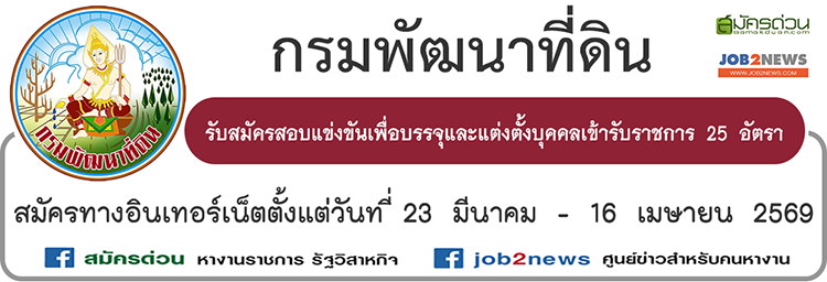 ผู้ประสงค์จะสมัครสอบ สมัครได้ทางอินเทอร์เน็ต ตั้งแต่วันที่ 23 มีนาคม 2569 ถึงวันที่ 16 เมษายน 2569 ตลอด 24 ชั่วโมง ไม่เว้นวันหยุดาชการ ที่เว็บไซต์ https://ldd.thaijobjob.com อ่านรายละเอียดที่ไฟล์ประกาศรับสมัคร