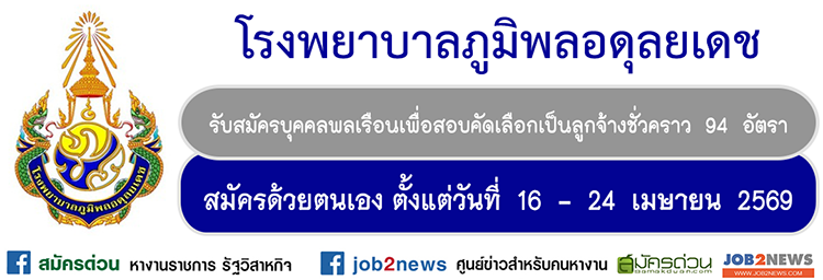โรงพยาบาลภูมิพลอดุลยเดช กรมแพทย์ทหารอากาศ รับสมัครบุคคลพลเรือนเพื่อสอบคัดเลือกเป็นลูกจ้างชั่วคราวรายเดือน โดยมีรายละเอียดดังต่อไปนี้