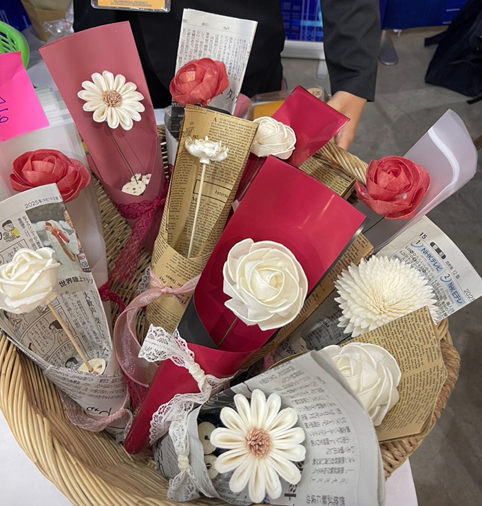 จากการลงพื้นที่ครั้งนี้ พบว่ากลุ่มวิสาหกิจมีแนวคิดนำเศษดอกโสนที่เหลือจากกระบวนการผลิตดอกไม้ มาพัฒนาเป็นกระดาษห่อช่อดอกไม้ เพื่อช่วยลดต้นทุนการผลิต เพิ่มมูลค่าวัสดุเหลือใช้ และต่อยอดเป็นผลิตภัณฑ์ใหม่ที่สร้างรายได้ให้แก่ชุมชน แนวทางดังกล่าวสอดคล้องกับแนวคิดเศรษฐกิจหมุนเวียน (Circular Economy) ที่มุ่งใช้ทรัพยากรอย่างคุ้มค่า ลดของเสีย และเพิ่มประสิทธิภาพการใช้ประโยชน์จากวัสดุในทุกมิติ สะท้อนบทบาทสำคัญของมหาวิทยาลัยในการนำองค์ความรู้ เทคโนโลยี และนวัตกรรม เข้าไปสนับสนุนผู้ประกอบการท้องถิ่น ให้สามารถยกระดับศักยภาพการแข่งขัน สร้างความเข้มแข็งทางเศรษฐกิจ และเติบโตได้อย่างมั่นคงยั่งยืนในอนาคต