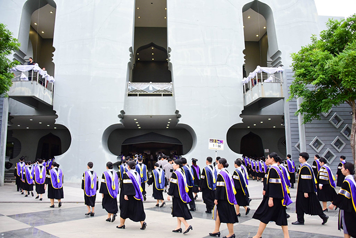 บรรยากาศการรายงานตัวที่บริเวณถนนหน้าอาคารวัฒนธรรมสถาบันขงจื่อ โดยบัณฑิตที่มีกำหนดเข้ารับพระราชทานปริญญาบัตรในวันที่ 27 เมษายน เริ่มรายงานตัวเวลา 06.00 น. และกลุ่มวันที่ 28 เมษายน รายงานตัวเวลา 09.00 น. ซึ่งทางมหาวิทยาลัยได้นำเทคโนโลยีระบบ RFID มาใช้ในการตรวจสอบข้อมูลและยืนยันตัวตน พร้อมทั้งมีการตรวจวัดอุณหภูมิและตรวจความเรียบร้อยของเครื่องแต่งกายอย่างละเอียด ก่อนที่คณะกรรมการควบคุมแถวจะนำบัณฑิตผ่านระบบ Gateway เพื่อเข้าสู่พื้นที่ประกอบพิธีภายในอาคารเฉลิมพระเกียรติฯ
