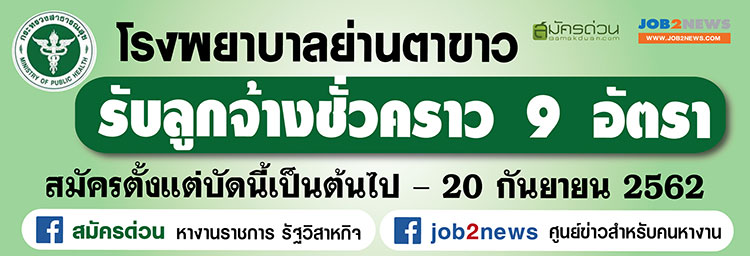 ประกาศโรงพยาบาลย่านตาขาว เรื่อง รับสมัครสอบคัดเลือกบุคคลทั่วไปเพื่อบรรจุเป็นลูกจ้างชั่วคราวเงินบำรุง (รายวัน) โดยมีรายละเอียดดังต่อไปนี้