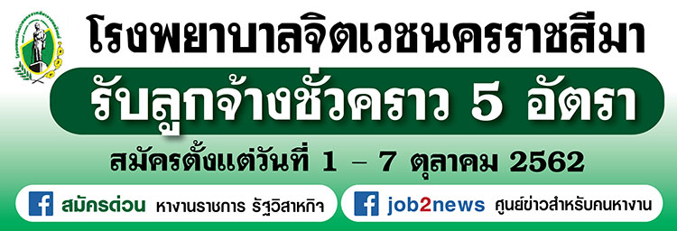 ประกาศโรงพยาบาลจิตเวชนครราชสีมาราชนครินทร์ เรื่อง รับสมัครบุคคลทั่วไปเพื่อสอบคัดเลือกเป็นลูกจ้างชั่วคราว โดยมีรายละเอียดดังต่อไปนี้