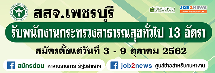 ประกาศสำนักงานสาธารณสุขจังหวัดเพชรบุรี เรื่อง รับสมัครบุคคลเพื่อสรรหาและเลือกสรรเป็นพนักงานกระทรวงสาธารณสุขทั่วไป โดยมีรายละเอียดดังต่อไปนี้