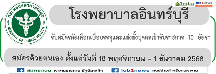 ประกาศจังหวัดสิงห์บุรี เรื่อง รับสมัครคัดเลือกเพื่อบรรจุและแต่งตั้งบุคคลเข้ารับราชการ ในตำแหน่งพยาบาลวิชาชีพปฏิบัติการ สังกัดโรงพยาบาลอินทร์บุรี สำนักงานสาธารณสุขจังหวัดสิงห์บุรี โดยมีรายละเอียดดังต่อไปนี้