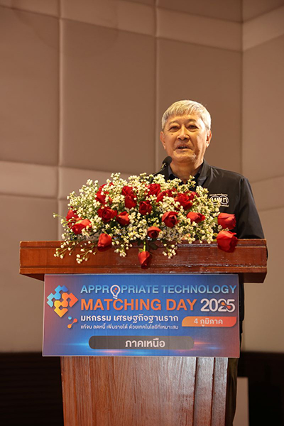 งานมหกรรม “เศรษฐกิจฐานราก: แก้จน ลดหนี้ เพิ่มรายได้ ด้วยเทคโนโลยีที่เหมาะสม” Appropriate Technology MATCHING DAY 2025 ภาคเหนือ จัดขึ้นเพื่อเป็นการสื่อสารเชิงนโยบายและชี้ให้เห็นรูปธรรมของการถ่ายทอดนวัตกรรมพร้อมใช้และเทคโนโลยีที่เหมาะสมและจัดแสดงผลงานการจัดการแก้ปัญหาคนจนและความเหลื่อมล้ำ การยกระดับเศรษฐกิจชุมชนและฐานรากทั้งภาคชนบท ท้องถิ่น และเมืองให้พึ่งพาตนเองได้อย่างยั่งยืน รวมถึงการสนับสนุนกิจกรรมแลกเปลี่ยนสำหรับการขยายผลวิจัยเทคโนโลยีที่เหมาะสม (Appropriate Technology) ระหว่างชุมชน/ผู้ประกอบการกับนักวิจัยของเครือข่ายมหาวิทยาลัยในพื้นที่ภาคเหนือและเป็นการถ่ายทอดองค์ความรู้ เครื่องมือ กระบวนการ ที่พัฒนาให้สามารถนำไปใช้ได้จริงในชุมชนทันที โดยออกแบบให้ตรงกับความต้องการของชุมชน และศักยภาพของประชาชนในแต่ละท้องถิ่น ไม่ว่าจะเป็นคนจนฐานราก เกษตรกรรายย่อย กลุ่มอาชีพ ผู้ประกอบการในพื้นที่ โดยใช้งานง่าย ไม่ซับซ้อน รวมถึงต้นทุนต่ำ และสอดคล้องกับทรัพยากรในพื้นที่ ที่แก้ปัญหาได้ตรงจุด เป็นหนึ่งในการยกระดับรายได้และคุณภาพชีวิตประชาชนให้ดีขึ้น