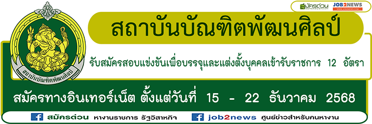 ประกาศสถาบันบัณฑิตพัฒนศิลป์ เรื่อง รับสมัครสอบแข่งขันเพื่อบรรจุและแต่งตั้งบุคคลเข้ารับราชการเป็นข้าราชการครู และบุคลากรทางการศึกษา ตำแหน่งบุคลากรทางการศึกษาอื่นตามมาตรา 38 ค. (2) สังกัดสถาบันบัณฑิตพัฒนศิลป์พ.ศ. 2568 โดยมีรายละเอียดดังต่อไปนี้