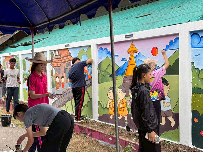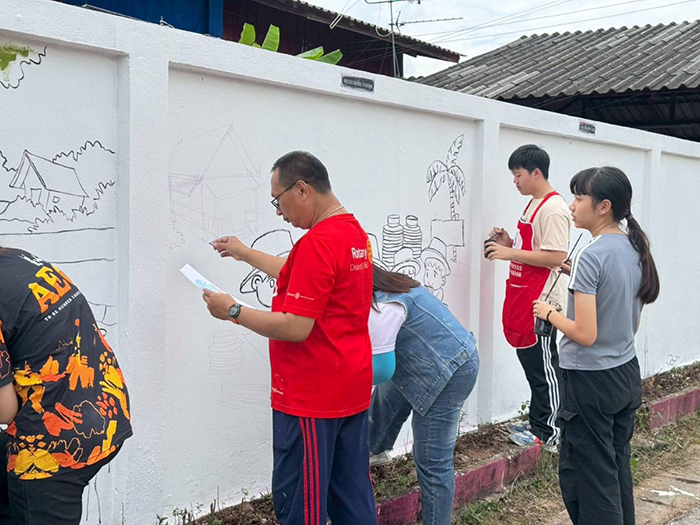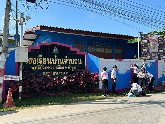 อาจารย์ศุภกาล ตุ้ยเต็มวงศ์ นำนักศึกษา หลักสูตรเตรียมวิศวกรรมศาสตร์และหลักสูตรเตรียมสถาปัตยกรรมศาสตร์ วิทยาลัยเทคโนโลยีและสหวิทยาการ มหาวิทยาลัยเทคโนโลยีราชมงคลล้านนา ร่วมกับ สโมสรโรตารีล้านนา – สโมสรโรตารีนครหริภุญชัย – Unite for Good จัดกิจกรรม “จิตกรรมสวยด้วยใจ ศิลป์สร้างสรรค์เพื่อชุมชน” ปรับปรุงภูมิทัศน์โรงเรียนและชุมชน ณ โรงเรียนบ้านบ้านจำบอน ตำบลศรีบัวบาน อำเภอเมือง จังหวัดลำพูน ระหว่างวันที่ 10 – 14 ธันวาคม 2568