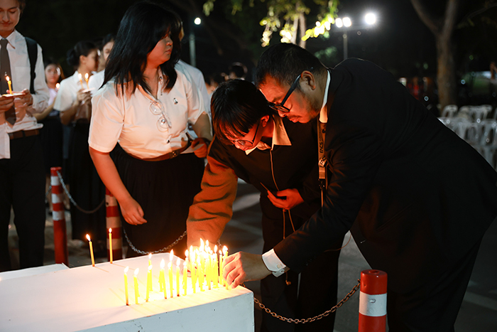 และพร้อมใจกัน จุดเทียนถวายความอาลัย เพื่อแสดงออกถึงความจงรักภักดี ความกตัญญู และความสำนึกในพระมหากรุณาธิคุณที่ทรง