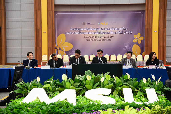 วันนี้ (22 กุมภาพันธ์ 2569) รองศาสตราจารย์ ดร.ประยุกต์ ศรีวิไล อธิการบดีมหาวิทยาลัยมหาสารคาม กล่าวต้อนรับอธิการบดีจากมหาวิทยาลัยต่าง ๆ และผู้แทน จาก 36 สถาบันที่เข้าร่วมประชุมสามัญที่ประชุมอธิการบดีแห่งประเทศไทย และสมาคมที่ประชุมอธิการบดีแห่งประเทศไทย ครั้งที่ 1/2569 ในฐานะที่มหาวิทยาลัยมหาสารคาม เป็นเจ้าภาพในการจัดประชุมครั้งนี้ พร้อมแนะนำมหาวิทยาลัยมหาสารคาม และผู้บริหารมหาวิทยาลัย ณ อาคารเฉลิมพระเกียรติในโอกาสฉลองพระชนมายุ 5 รอบ 2 เมษายน 2558 มหาวิทยาลัยมหาสารคาม (เขตพื้นที่ในเมือง)