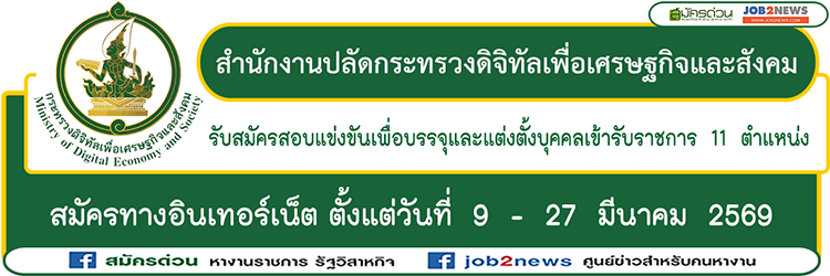 ประกาศสำนักงานปลัดกระทรวงดิจิทัลเพื่อเศรษฐกิจและสังคม เรื่อง รับสมัครสอบแข่งขันเพื่อบรรจุและแต่งตั้งบุคคลเข้ารับราชการ โดยมีรายละเอียดดังต่อไปนี้