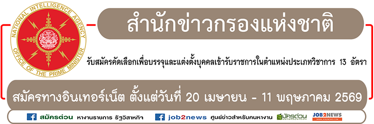ประกาศสำนักข่าวกรองแห่งชาติ เรื่อง รับสมัครคัดเลือกเพื่อบรรจุและแต่งตั้งบุคคลเข้ารับราชการในตำแหน่งประเภทวิชาการ ตำแหน่งนักการข่าวปฏิบัติการ (ด้านภาษาต่างประเทศ) โดยมีรายละเอียดดังต่อไปนี้