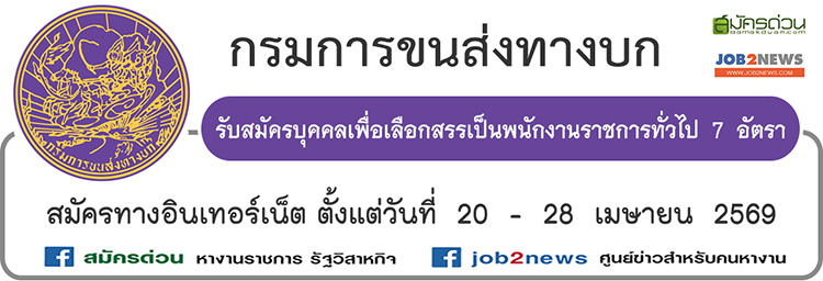 ประกาศกรมการขนส่งทางบก เรื่อง รับสมัครบุคคลเพื่อเลือกสรรเป็นพนักงานราชการทั่วไป ในตำแหน่งนักวิชาการขนส่ง เจ้าพนักงานการเงินและบัญชี และนายช่างก่อสร้าง โดยมีรายละเอียดดังต่อไปนี้