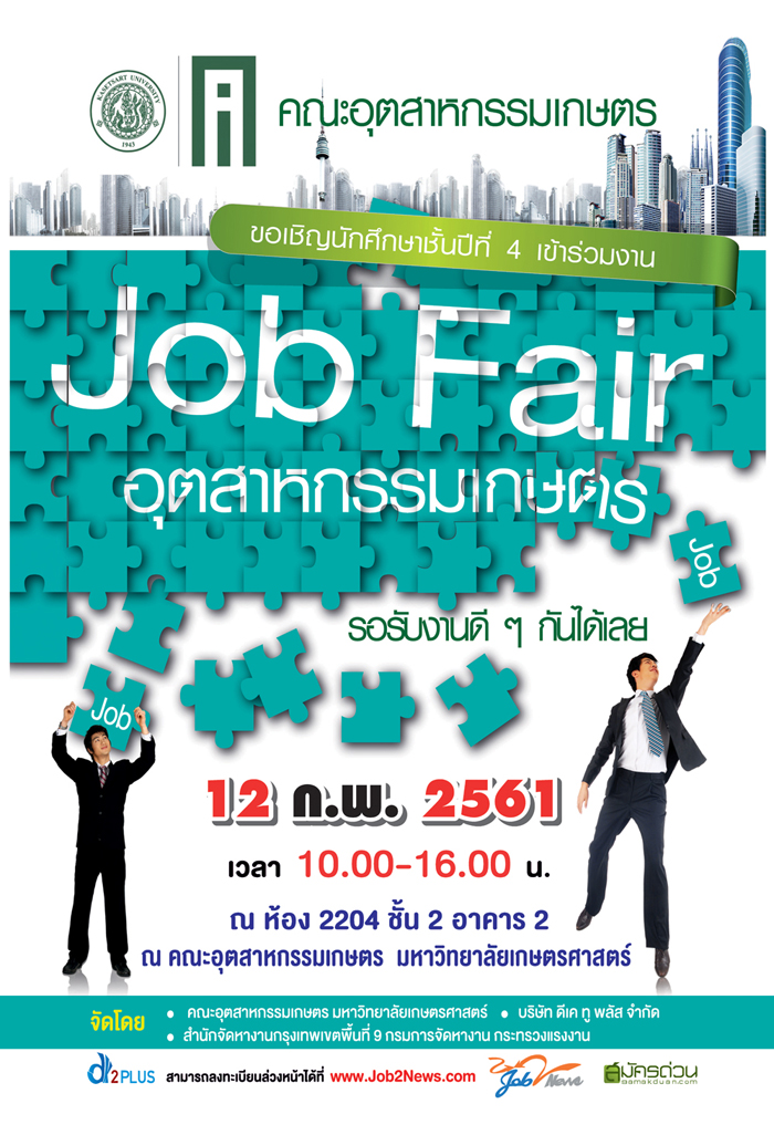 ขอเชิญเข้าร่วมงาน Job Fair อุตสาหกรรมเกษตร รอรับงานดีๆ กันได้เลยวันที่ 12 กุมภาพันธ์ 2561เวลา 10.00 - 16.00 น.ณ ห้อง 2204 ชั้น 2 อาคาร 2 ณ คณะอุตสาหกรรมเกษตร มหาวิทยาลัยเกษตรศาสตร์