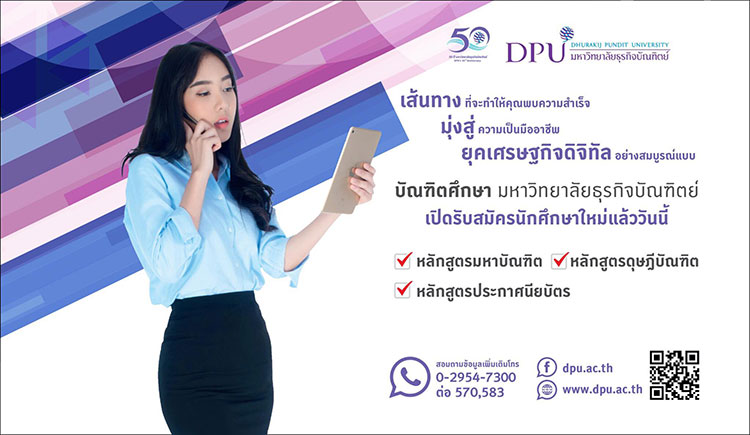มหาวิทยาลัยธุรกิจบัณฑิตย์ เปิดรับสมัครนักศึกษาใหม่ ปริญญาโท ปริญญาเอกและหลักสูตรประกาศนียบัตร ประจำภาคเรียนที่ 1/2561 ค้นหาเส้นทางที่จะทำให้คุณพบความสำเร็จ พร้อมมุ่งสู่ความเป็นมืออาชีพ ในยุคเศรษฐกิจดิจิทัลอย่างสมบูรณ์แบบกับหลักสูตรคุณภาพ ผู้สนใจสามารถสมัครเรียนได้ตั้งแต่วันนี้เป็นต้นไป หรือสอบถามรายละเอียดเพิ่มเติม โทร.0-2954-7300 ต่อ 570, 583