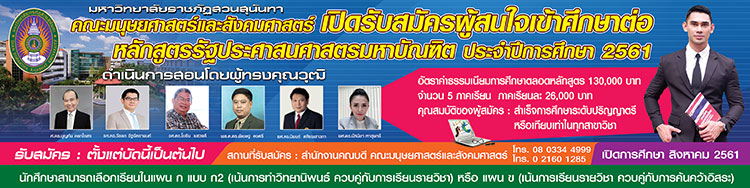 เปิดรับสมัคร ผู้สนใจเข้าศึกษาต่อหลักสูตรรัฐประศาสนศาสตรมหาบัณฑิต ประจำปีการศึกษา 2561
