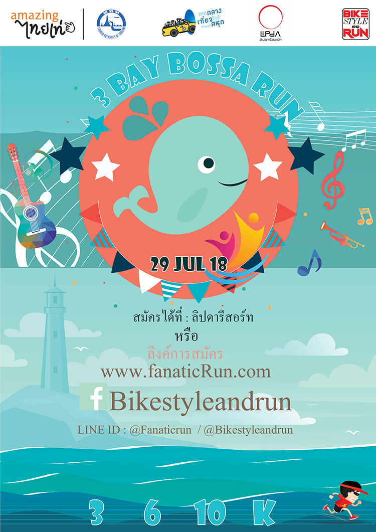BIKE STYLE and Run ร่วมกับ การท่องเที่ยวแห่งประเทศไทย (ททท.) และ ลิปดา รีสอร์ท คลองวาฬ เชิญนักวิ่งและผู้รักสุขภาพ มาร่วมวิ่งสนุกเพื่อสุขภาพ ‘3 BAY BOSSA RUN’ วันอาทิตย์ที่ 29 กรกฎาคม 2561 งานวิ่งที่คุณจะได้ทั้งความบันเทิง สนุก สุขภาพ และการกุศล มาเติมสีสันในช่วงเช้าวันอาทิตย์ ด้วยการออกกำลังกายเดิน-วิ่งไปพร้อมกัน