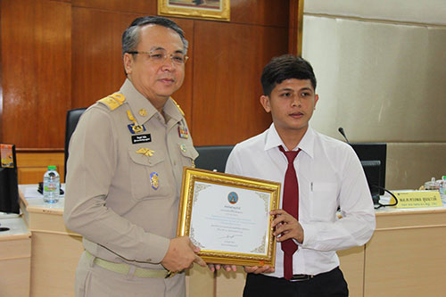 นายวิชวุทย์ จินโต ผู้ว่าราชการจังหวัดสุราษฎร์ธานี มอบเกียรติบัตรให้แก่ นายจักราวุฒิ หีตอักษร นักศึกษาสาขาวิชาการจัดการอุตสาหกรรม คณะวิทยาศาสตร์และเทคโนโลยี มหาวิทยาลัยราชภัฏสุราฎร์ธานี เยาวชนผู้มีจิตสาธารณะที่กระทำความดีต่อสังคม จากเหตุการณ์เมื่อช่วงปลายเดือน มิถุนายน 2561 ที่นายจักราวุฒิ หีตอักษร กำลังพยายามขุดหินและดินที่กองอยู่บริเวณคอสะพาน เพื่อซ่อมคอสะพานสาธารณะ ร่วมกับน้องๆ อีก 2 คน ณ บ้านปากหลาว หมู่ที่ 6 ตำบลตุกุกใต้ อำเภอวิภาวดี จังหวัดสุราษฎร์ธานี เพื่อให้รถได้สัญจรไปมาได้สะดวก