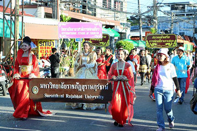 มหาวิทยาลัยราชภัฏสุราฎร์ธานี จับมือจังหวัดสุราษฎร์ธานี บูรณาการร่วมกับภาครัฐภาคเอกชน จัดเทศกาลท่องเที่ยวเกาะสมุย ครั้งที่ 3 (SAMUI FESTIVAL 2018) เศรษฐกิจและส่งเสริมการท่องเที่ยวเกาะสมุย และจังหวัดสุราษฎร์ธานี สู่สายตานักท่องเที่ยวทั่วโลก เดินหน้าผลักดันให้เทศกาล SAMUI FESTIVAL ไปอยู่ในปฏิทินของนักท่องเที่ยวทั่วโลก นำศิลปวัฒนธรรมของภาคใต้ มาร่วมนำเสนอในลักษณะโครงการประชารัฐ ซึ่งได้รับเกียรติจากนายสนธิรัตน์ สนธิจิรวงศ์ รัฐมนตรีว่าการกระทรวงพาณิชย์ มาเป็นประธานเปิดงาน ณ เวทีกลางท่าเรือหน้าทอน อำเภอเกาะสมุย จังหวัดสุราษฎร์ธานี