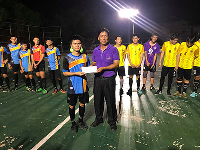 เมื่อเร็วๆ นี้ ที่สนามกีฬามหาวิทยาลัยเทคโนโลยีราชมงคลล้านนา ลำปาง ผู้ช่วยศาสตราจารย์วีระ อินทร์นารี ผู้อำนวยการกองบริหารทรัพยากร กล่าวต้อนรับทีมฟุตซอลโรงเรียนผู้ใหญ่มูลนิธิฟ้าใหม่ ในโอกาสแข่งขันฟุตซอลกับทีมมหาวิทยาลัยเทคโนโลยีราชมงคลล้านนา ลำปาง ในโครงการฟุตซอลสัมพันธ์ และมอบรางวัลแก่นักกีฬาทั้งสองทีม