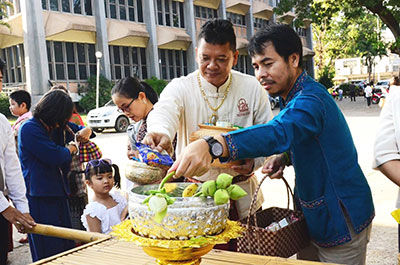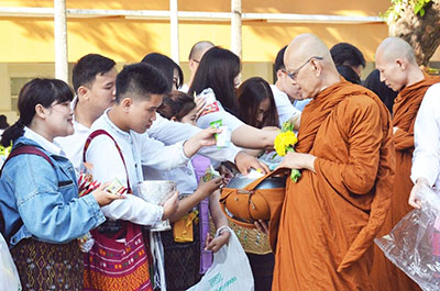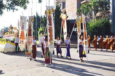 โดยนิสิตคณะวัฒนธรรมศาสตร์ มหาวิทยาลัยมหาสารคาม ได้จัดขบวนแห่พระพุทธรูปปางเปิดโลก นำขบวนพระภิกษุ สามเณรออกรับบิณฑบาต เพื่อส่งเสริมประเพณี วัฒนธรรมที่ดีงามของไทย อีกทั้งเป็นการระลึกถึงพระพุทธคุณที่ทรงมีต่อพุทธบริษัท และสืบทอดประเพณีสำคัญพุทธศาสนา