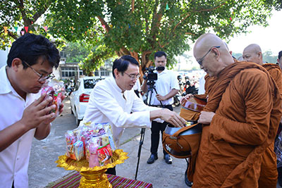 เช้าวันนี้ (เวลา 07.00 น.) ที่บริเวณหน้าหอพระพุทธกันทรวิชัยอภิสมัยธรรมนายก มหาวิทยาลัยมหาสารคาม (เขตพื้นที่ในเมือง) ศาสตราจารย์ ดร.สัมพันธ์ ฤทธิเดช อธิการบดีมหาวิทยาลัยมหาสารคาม พร้อมด้วย คณะผู้บริหาร คณาจารย์ บุคลากร นิสิต นักเรียนมหาวิทยาลัยมหาสารคาม และชาวจังหวัดมหาสารคาม ได้นำข้าวสาร อาหารแห้ง ร่วมกันตักบาตรเทโวโรหณะ พระสงฆ์ จำนวน 7 รูป เนื่องในเทศกาลวันออกพรรษา ประจำปี 2561 โดยมี พระครูวินัยวรญาณ (มนูญชัย มนูญญพโล) เจ้าคณะอำเภอกันทรวิชัย (ธ)เจ้าอาวาสวัดป่าศรัทธาธรรมวิทยา จังหวัดมหาสารคาม เป็นประธานฝ่ายสงฆ์