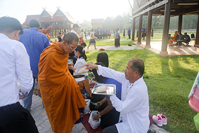 ดร.วัฒนา รัตนพรหม รักษาราชการเเทนอธิการบดี มหาวิทยาลัยราชภัฏสุราษฎร์ธานี กล่าวว่า มหาวิทยาลัยเล็งเห็นถึงความสำคัญในการทำนุบำรุงศิลปะและวัฒนธรรม จึงกำหนดจัดกิจกรรมตักบาตร ข้าวสารอาหารแห้ง และถวายภัตตาหารพระสงฆ์ ซึ่งทางมหาวิทยาลัยได้พยายามส่งเสริมให้เกิดกิจกรรมเช่นนี้มาโดยตลอดในพื้นที่ต่าง ๆ อาทิ ที่ตำบลพุมเรียง อำเภอไชยา จังหวัดสุราษฎร์ธานี มหาวิทยาลัยได้สร้างบรรยากาศชุมชนสองวัฒนธรรม ซึ่งในวันนี้ได้มาจัดที่ ศูนย์วัฒนธรรมศึกษาเรือนไทย4ภาค มหาวิทยาลัยราชภัฏสุราษฎร์ธานี เพื่อเป็นการส่งเสริมบรรยากาศเหล่านี้กิจกรรมตักบาตร ข้าวสารอาหารแห้ง และถวายภัตตาหารพระสงฆ์ ให้กับบุคลากร นักศึกษาและประชาชนที่สนใจได้ร่วมกันทำบุญและสนับสนุนการอนุรักศิลปะวัฒนธรรมของไทยต่อไป