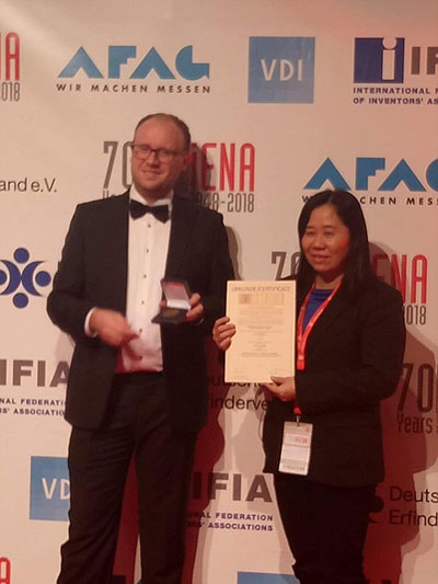 นักวิจัยมหาวิทยาลัยเทคโนโลยีราชมงคล (มทร.) สุวรรณภูมิ คว้ารางวัลเกียรติยศจากการประกวด และจัดแสดงผลงานวิจัย สิ่งประดิษฐ์ และนวัตกรรม 1 เหรียญทอง พร้อมรางวัลพิเศษจากประเทศอิหร่าน อีก 1 รางวัล และอีก 1 เหรียญทองแดง มุ่งสู่การพัฒนานวัตกรรมเพื่อการใช้ประโยชน์ ในเวที “The International Trade Fair-Ideas, Inventions and New Products” (iENA 2018) ณ เมืองนูเรมเบิร์ก สหพันธ์สาธารณรัฐเยอรมนี ซึ่งมีผลงานเข้าร่วมจัดแสดงกว่า 800 ผลงาน จาก 30 ประเทศทั่วโลก โดย นักวิจัย มทร.สุวรรณภูมิ ส่งผลงานเข้าประกวดและจัดแสดง จำนวน 2 ผลงาน ดังนี้