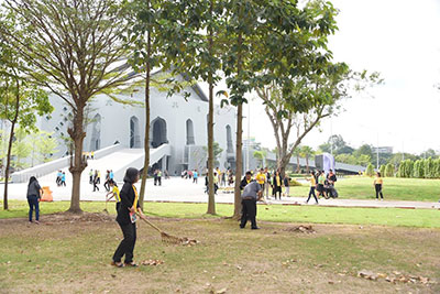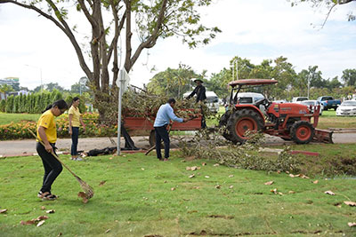 โดยในช่วงเช้าวันนี้ ผู้บริหาร คณาจารย์ บุคลากร นิสิต จากทุกคณะ/หน่วยงาน ภายในมหาวิทยาลัยมหาสารคาม ได้พร้อมใจสามัคคี ทำกิจกรรมร่วมกันโดยการทำความสะอาดบริเวณโดยรอบอาคารเฉลิมพระเกียรติฯ ตัดแต่งต้นไม้ กวาดใบไม้ เก็บขยะ กำจัดวัชพืช กวาดถนน ล้างถนนภายในมหาวิทยาลัยมหาสารคาม (เขตพื้นที่ในเมือง) ให้เกิดความสะอาด เรียบร้อย สวยงาม เป็นการร่วมแรงร่วมใจกันของชาว มมส เพื่อเตรียมแสดงความยินดี และต้อนรับบัณฑิตที่สำเร็จการศึกษา ให้เกิดความประทับใจกับบรรยากาศและสถานที่ที่สวยงาม