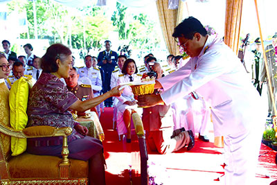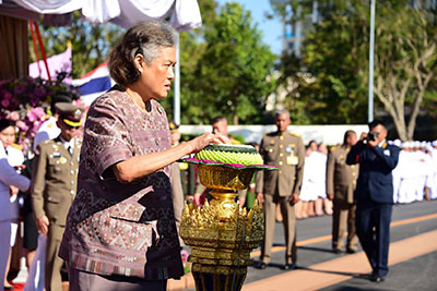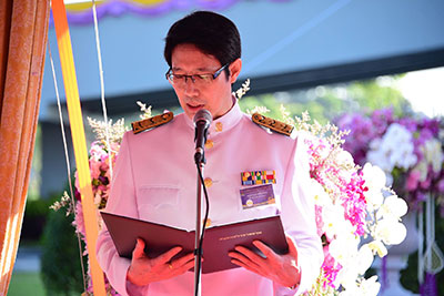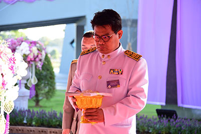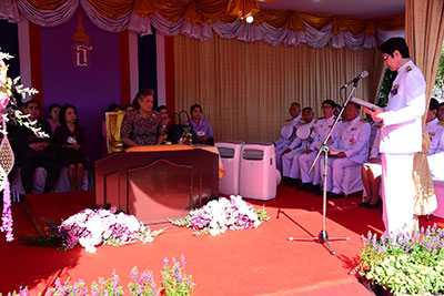 สมเด็จพระเทพรัตนราชสุดาฯ สยามบรมราชกุมารี เสด็จประทับพระราชอาสน์ ผู้ช่วยศาสตราจารย์ ดร.ธีรยุทธ ชาติชนะยืนยง รองอธิการบดีฝ่ายอำนวยการ มหาวิทยาลัยมหาสารคาม กราบบังคมทูลถวายรายงานความเป็นมาการจัดสร้างอาคารเฉลิมพระเกียรติในโอกาสฉลองพระชนมายุ 5 รอบ 2 เมษายน 2558จากนั้น เสด็จออกจากพลับพลาพิธี ไปยังแท่นทรงกดปุ่มไฟฟ้าเปิดแพรคลุมป้าย อาคารเฉลิมพระเกียรติในโอกาสฉลองพระชนมายุ 5 รอบ 2 เมษายน 2558
