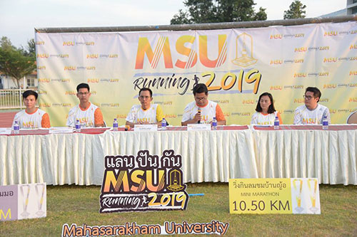มหาวิทยาลัยมหาสารคาม แถลงข่าวเตรียมความพร้อมจัดการแข่งขันเดิน-วิ่ง “ แลน ปัน กัน MSU Running 2019” รายได้หลังหักค่าใช้จ่าย สมทบทุนในการจัดหาเครื่องมือทางการแพทย์ โรงพยาบาลสุทธาเวช มหาวิทยาลัยมหาสารคาม และสนับสนุนทุนการศึกษาให้กับนิสิตพิการ กำหนดจัดขึ้นในวันอาทิตย์ที่ 13 มกราคม 2562