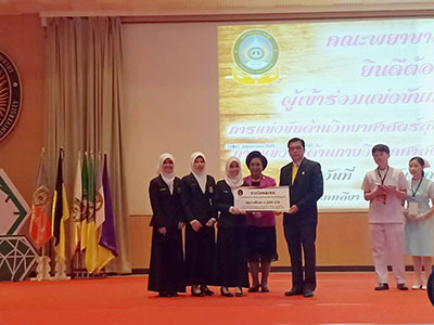 นักศึกษาชั้นปี ที่ 1 คณะพยาบาลศาสตร์ มหาวิทยาลัยราชภัฎสุราษฎร์ธานี คว้ารางวัลชมเชย ลำดับที่ 1 จากการเข้าร่วมแข่งขันตอบคำถามด้านกายวิภาคศาสตร์ ในระดับปริญญาตรี ระหว่างวันที่ 2-5 ธันวาคม 2561 ณ มหาวิทยาลัยราชภัฎเพชรบุรี โดยมีผู้เข้าร่วมแข่งขันกว่า 22 ทีม จากสถาบันการศึกษาด้านสุขภาพต่างจากทั่วประเทศ ในการแข่งขันทักษะทางวิชาการ ระดับมัธยมศึกษา อาชีวศึกษา และอุดมศึกษา จากการประชุมวิชาการและนำเสนอผลงานวิจัย ระดับชาติและนานาชาติ ราชภัฎวิจัย ครั้งที่ 5 สหวิทยาการกับการสร้างสรรค์นวัตกรรม เพื่อพัฒนาท้องถิ่นอย่างยั่งยืนตามศาสตร์พระราชา