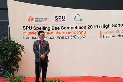 คณะศิลปศาสตร์ มหาวิทยาลัยศรีปทุม ร่วมกับ สถาบัน Andrew Biggs Academy เปิดเวทีส่งเสริมการแสดงทักษะความรู้ความสามารถทางด้านภาษาอังกฤษ สำหรับน้องๆนักเรียนระดับมัธยมศึกษาตอนปลาย ด้วยการจัดประกวดแข่งขันการสะกดคำภาษาอังกฤษ ในกิจกรรมโครงการ SPU Spelling Bee Competition 2019 (High School) โดยมี ผู้ช่วยศาสตราจารย์ ดร.วิรัช เลิศไพฑูรย์พันธ์ รองอธิการบดี มหาวิทยาลัยศรีปทุม เป็นประธานในพิธีฯ และได้รับเกียรติจาก คุณแอนดรูว์ พีตรี บิ๊กส์ ประธานกรรมการบริหาร บริษัท แอนดรูว์ บิ๊กส์ จำกัด ร่วมถ่ายทอดความรู้และให้เกียรติเป็นคณะกรรมการตัดสินกิจกรรมการแข่งขันฯในครั้งนี้ ณ Exhibition Hall Zone A ชั้น 1 อาคาร 11 มหาวิทยาลัยศรีปทุม กทม.(บางเขน)