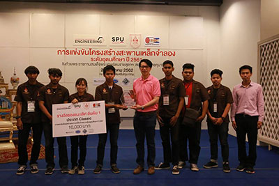 ทีมโยธาเทคโน (ศรีวิชัยสงขลา) มหาวิทยาลัยราชมงคลศรีวิชัย สงขลา คว้าแชมป์ ประเภท Classic ถ้วยพระราชทาน สมเด็จพระเทพรัตนราชสุดาฯ สยามบรมราชกุมารี พร้อมเงินรางวัล 20,000 ส่วนทีม Unknow Nymous จาก มหาวิทยาลัยศรีปทุม คว้าแชมป์ ประเภท Open พร้อมเงินรางวัล 10,000 บาท การแข่งขันโครงสร้างสะพานเหล็กจำลอง ระดับอุดมศึกษา ประจำปีการศึกษา 2561 (U-Bridge Open 2018)