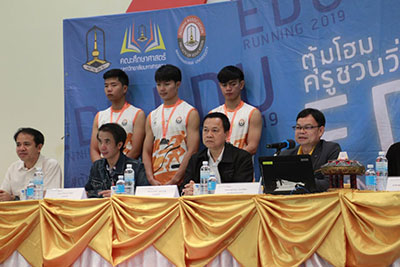 ที่ห้องประชุมชั้น 3 อาคารวิทยพัฒนา คณะศึกษาศาสตร์ มหาวิทยาลัยมหาสารคาม จัดแถลงข่าว การจัดการแข่งขัน ตุ้มโฮม ครูชวนวิ่ง EDU RUNNING 2019 เริ่มงานด้วยการเปิดตัวเสื้อที่ใช้ในการแข่งขัน และการแสดงเชียร์ลีดเดอร์ ของนิสิตคณะศึกษาศาสตร์ จากนั้น รองศาสตราจารย์ ดร. พชรวิทย์ จันทร์ศิริสิร คณบดีคณะศึกษาศาสตร์ มหาวิทยาลัยมหาสารคาม เป็นประธานการแถลงข่าว ร่วมกับคณะกรรมการจัดการแข่งขัน กล่าวถึงความพร้อมของการจัดงาน โดยมีสื่อมวลชนจากทุกแขนงในจังหวัดมหาสารคาม ร่วมการแถลงข่าว