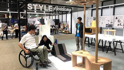 นอกจากนี้ภายในบูธแสดงผลงานยังได้รับเกียรติจาก คุณอ๋อย กฤษณะ ละไล พิธีกรชื่อดังได้แวะเข้าเยี่ยมชมผลงาน พร้อมพูดคุยแลกเปลี่ยนแนวคิด ความเชื่อมโยงของงานเฟอร์นิเจอร์ไปสู่การออกแบบ Universal Design อีกด้วย