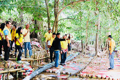 วันอังคารที่ 23 เมษายน 2562 มหาวิทยาลัยราชภัฏสุราษฎร์ธานี ลงพื้นที่สร้างฝายภูริน ซึ่งมี ดร.ชมพูนุท ชัยรัตนะ รองอธิการบดีฝ่ายวิชาการมหาวิทยาลัยราชภัฏสุราษฎร์ธานี และสาขาวิชาเทคโนโลยีเพาะเลี้ยงสัตว์น้ำ เป็นผู้ดำเนินงานด้านการจัดการน้ำ โดยได้ร่วมกับกลุ่มเกษตรกรบ้านภูริน และกลุ่มสหกรณ์ผู้เลี้ยงกุ้งสุราษฎร์ธานี ในการสร้างฝายมีชีวิต “การจัดการตนเองโดยชุมชน “ตำบลคลองสระ อำเภอกาญจนดิษฐ์ จังหวัดสุราษฎร์ธานี