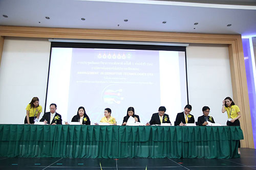 ในวันศุกร์ที่ 26 เมษายน 2562 มหาวิทยาลัยเทคโนโลยีราชมงคลรัตนโกสินทร์ โดยวิทยาลัยนวัตกรรมการจัดการ ร่วมกับ มหาวิทยาลัยเทคโนโลยีราชมงคลกรุงเทพ มหาวิทยาลัยเทคโนโลยีราชมงคลพระนคร มหาวิทยาลัยเทคโนโลยีราชมงคลศรีวิชัย มหาวิทยาลัยเทคโนโลยีราชมงคลสุวรรณภูมิ มหาวิทยาลัยเทคโนโลยีราชมงคลอีสาน และมหาวิทยาลัยราชภัฏราชนครินทร์ จัดการประชุมสัมมนาวิชาการระดับชาติ ประจำปี 2562 เพื่อให้อาจารย์ นักวิจัย นักศึกษา บุคลากรในแวดวงวิชาการและวิจัยทั้งภายในและภายนอกมหาวิทยาลัย และภาคประชาสังคม ได้มีโอกาสนำเสนอผลงานทางวิจัย รวมทั้งแลกเปลี่ยนประสบการณ์ด้านการวิจัย มีการเรียนรู้ร่วมกันเพื่อพัฒนาคุณภาพด้านวิจัยในสาขาต่าง ๆ โดยมี รศ.ดร.อุดมวิทย์ ไชยสกุลเกียรติ รองอธิการบดี เป็นประธานเปิดการประชุม และมีพิธีลงนามบันทึกข้อตกลงความร่วมมือการประชุมวิชาการระดับชาติระหว่าง 7 สถาบัน ณ ห้องประชุม 508 ชั้น 5 อาคารสิรินธร มทร.รัตนโกสินทร์ พื้นที่ศาลายา