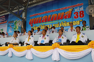 ส่วน ดร.อรสา ภาววิมล รองเลขาธิการคณะกรรมการการอุดมศึกษา ประธานพิธีเปิดการแข่งขันกีฬาบุคลากรในสังกัดสํานักงาน คณะกรรมการการอุดมศึกษา ครั้งที่ 38 ขุนเลเกมส์ กล่าวว่า กีฬา คือ สื่อในการสืบสานสายสัมพันธ์ สร้างความเข้าใจอันดี สร้างความสมัครสมานสามัคคีกลมเกลียวให้เกิดขึ้นในหมู่คณะ ดังนั้น กระทรวง การอุดมศึกษาวิทยาศาสตร์วิจัยและนวัตกรรม จึงให้การสนับสนุนการแข่งขันกีฬาบุคลากรในสังกัดสํานักงานคณะกรรมการการอุดมศึกษา มาอย่างต่อเนื่องและยาวนาน เพื่อเป็นกิจกรรมหนึ่งที่ส่งเสริมให้บุคลากรมีความสมบูรณ์พร้อมทั้ง ทางด้านร่างกาย จิตใจ อารมณ์ สังคมและสติปัญญา ก่อให้เกิดความรักสมัครสมานสามัคคี สัมพันธภาพอันดีระหว่างบุคลากรของสถาบันการศึกษาระดับอุดมศึกษาทั่วประเทศ อย่างไรก็ตาม ดิฉันใคร่ขอให้ข้อคิดแก่นักกีฬาทั้งหลายว่า ในการแข่งขันย่อมมีแพ้ มีชนะ นักกีฬาควรที่จะรู้แพ้รู้ชนะ และรู้จักให้อภัยซึ่งกันและกัน ควรมีการแสดงออกซึ่งน้ําใจของนักกีฬาที่งดงาม จงใช้กีฬา เพื่อเป็นสิ่งสร้างสรรค์ สร้างสัมพันธไมตรีที่ดีระหว่างกัน