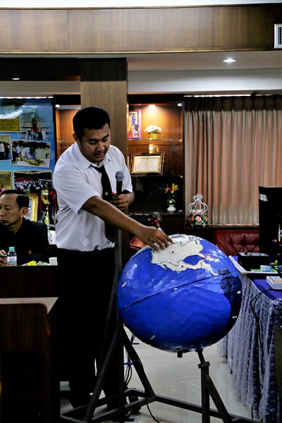 โครงงานเรื่อง “พัฒนาสื่อการสอนลูกโลกสำหรับนักเรียนผู้บกพร่องทางการเห็น” เป็นผลงานวิทยานิพนธ์ของ ว่าที่ร้อยตรียุทธพงษ์ อ้นน้อย