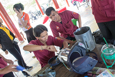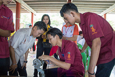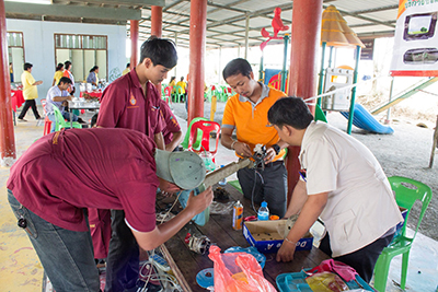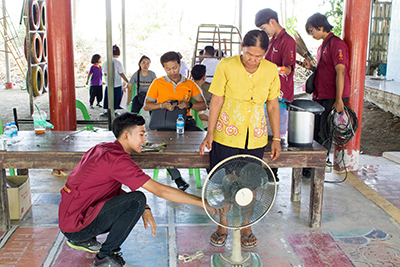 อาจารย์คณะครุศาสตร์อุตสาหกรรม มหาวิทยาลัยเทคโนโลยีราชมงคลสุวรรณภูมิ (มทร.สุวรรรณภูมิ) นำนักศึกษา สาขาวิชาวิศวกรรมอิเล็กทรอนิกส์และโทรคมนาคม ร่วมปฏิบัติราชการให้บริการประชาชน (จังหวัดเคลื่อนที่) ประจำปี พ.ศ. ๒๕๖๒ ร่วมกับจังหวัดสุพรรณบุรี เพื่อซ่อมแซมเครื่องใช้ไฟฟ้าอุปกรณ์อิเล็กทรอนิกส์ ให้กับประชาชน ณ วัดดอนกระเบี้อง หมู่ที่ ๕ ตําบลบางใหญ่ อําเภอบางปลาม้า จังหวัดสุพรรณบุรี