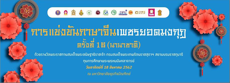 การแข่งขันภาษาจีนที่ใหญ่ที่สุดในประเทศกลับมาอีกครั้ง กับการแข่งขันภาษาจีนเพชรยอดมงกุฎ ครั้งที่ 16 (นานาชาติ) ชิงถ้วยรางวัลพระราชทานสมเด็จพระขนิษฐาธิราชเจ้า กรมสมเด็จพระเทพรัตนราชสุดาฯ สยามบรมราชกุมารี และทุนการศึกษาพระพรหมมังคลาจารย์ ที่มูลนิธิร่มฉัตร ร่วมกับมหาวิทยาลัยธุรกิจบัณฑิตย์จัดขึ้น เพื่อส่งเสริมและพัฒนาทักษะด้านภาษาจีนให้แก่เยาวชนไทย
