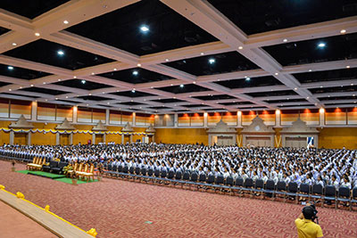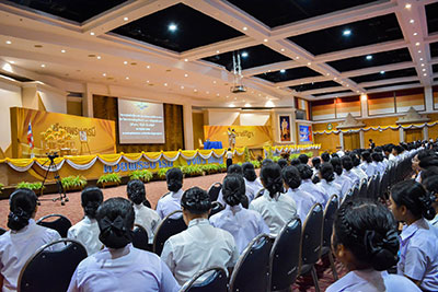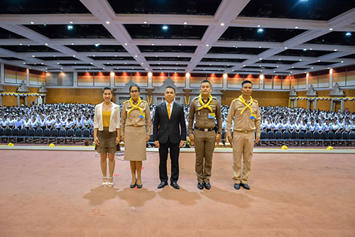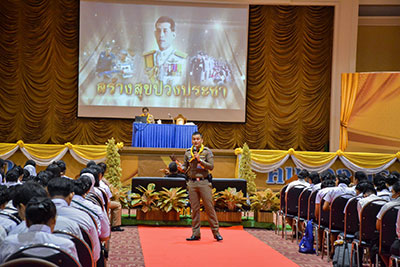 วันนี้(26 มิ.ย. 62) ที่หอประชุมวชิราลงกรณ มหาวิทยาลัยราชภัฏสุราษฎร์ธานี นักศึกษาใหม่ ประจำปีการศึกษา 2562 กว่า 3,600 คน ณ เข้าร่วมกิจกรรมการอบรม เรื่องสถาบันพระมหากษัตริย์กับประเทศไทย “หลักสูตรประจำ”รุ่นที่ 2/61 “เป็นเบ้า เป็นแม่พิมพ์” โดยมีชุดวิทยากรจิตอาสา 904 บรรยายให้ความรู้ เรื่องสถาบันพระมหากษัตริย์กับประเทศไทย เพื่อปลูกจิตสำนึกให้ส่วนราชการ จิตอาสา และทุกภาคส่วน มีสำนึกรักชาติ ศาสนา พระมหากษัตริย์ ได้รับรู้ประวัติศาสตร์ชาติไทยอย่างลึกซึ้ง โดยที่บูรพกษัตริย์ไทยได้ทรงเสียสละเพื่อปกปักษ์รักษาเอกราชของชาติไทยตราบจนปัจจุบัน
