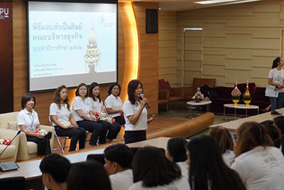 ผศ.ดร.รวิภา อัครจินดานนท์ คณบดีคณะบริหารธุรกิจ มหาวิทยาลัยศรีปทุม เป็นประธานในพิธีมอบตัวเป็นศิษย์ และกล่าวต้อนรับลูกๆเฟรชชี่”62 นักศึกษาใหม่ คณะบริหารธุรกิจ ประจำปีการศึกษา 2562 โดยมีผู้บริหาร คณาจารย์ และรุ่นพี่นักศึกษาทีม Staff กิจกรรมนักศึกษาของคณะบริหารธุรกิจ เข้าร่วมกิจกรรมดังกล่าว ณ ห้องออดิทรอเรียม 2 ชั้น 14 อาคาร 11 มหาวิทยาลัยศรีปทุม กทม.(บางเขน)