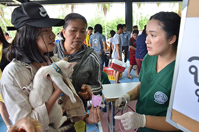 ด้าน ดร.พงษ์จันทร์ คล้ายอุดม รักษาราชการแทนอธิการบดีมหาวิทยาลัยราชภัฏสุราษฎร์ธานี กล่าวว่า มหาวิทยาลัยราชภัฏสุราษฎร์ธานี ร่วมกับจังหวัดสุราษฎร์ธานี ดําเนินโครงการปศุสัตว์ร่วมใจกําจัดภัยโรคพิษสุนัขบ้า เพื่อเฉลิมพระเกียรติและน้อมสํานึกในพระมหากรุณาธิคุณ สมเด็จพระเจ้าน้องนางเธอ เจ้าฟ้าจุฬาภรณวลัยลักษณ์ อัครราชกุมารี กรมพระศรีสวางควัฒนเนื่องในวันคล้ายวันประสูติ และควบคุมประชากรสุนัขและแมวในพื้นที่เสี่ยงต่อการเกิด โรคพิษสุนัขบ้า โดยการผ่าตัดทําหมันฉีดวัคซีนป้องกันโรคพิษสุนัขบ้าอย่างครอบคลุมทั่วถึงให้สัตว์กลุ่มเสียงตลอดจนการส่งเสริมให้เจ้าของสัตว์และประชาชนมีความรู้ความเข้าใจเรื่อง โรคพิษสุนัขบ้าและกฎหมายที่เกี่ยวข้องกับโรคพิษสุนัขบ้า สามารถระวัง ป้องกันโรคพิษสุนัขบ้าในสัตว์เลี้ยงและดูแลตนเองให้ปลอดภัยจากโรคได้ รวมถึงการปลูกจิตสํานึก “เลี้ยงสัตว์อย่างรับผิดชอบ” ให้กับประชาชน ในการดําเนินโครงการฯ ได้รับความร่วมมือ จากสํานักงานปศุสัตว์จังหวัด สํานักงานส่งเสริมการปกครองท้องถิ่นจังหวัด สํานักงานสาธารณสุขจังหวัด สํานักงานประชาสัมพันธ์จังหวัด และเทศบาลตําบลขุนทะเล อำเภอเมือง จังหวัดสุราษฎร์ธานี เป็นอย่างดี