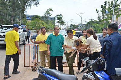 นายธีระ อนันตเสรีวิทยา รองผู้ว่าราชการจังหวัดสุราษฎร์ธานี ประธานพิธีเปิดโครงการฯ กล่าวว่า การดําเนินงานโครงการปศุสัตว์ร่วมใจกําจัดภัยโรคพิษสุนัขบ้าเพื่อเฉลิมพระเกียรติฯ จัดขึ้นเพื่อให้สุนัขและแมวได้รับการฉีดวัคซีนป้องกันโรคพิษสุนัขบ้าจากองค์กรปกครองส่วนท้องถิ่น ครอบคลุมทุกพื้นที่ทั่วประเทศ และมีการดําเนินการอย่างต่อเนื่องเป็นประจําทุกปี รวมถึงประชาสัมพันธ์ให้ประชาชนมีความรู้ ความเข้าใจและตระหนักรู้ถึงอันตรายของ โรคพิษสุนัขบ้า ไม่ปล่อยสัตว์เลี้ยงให้เป็นสัตว์จรจัด และสามารถลดปัญหาการเพิ่มจํานวน ของสุนัข-แมวจรจัดตามที่สาธารณะ ซึ่งหน่วยงานที่เกี่ยวข้องสามารถร่วมกันสร้างพื้นที่ ปลอดโรคพิษสุนัขบ้า และป้องกันไม่ให้มีคนเสียชีวิตด้วยโรคพิษสุนัขบ้าอี