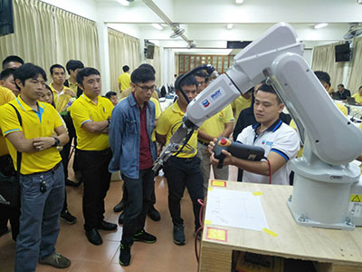 อาจารย์ศุภกาล ตุ้ยเต็มวงศ์ อาจารย์ประจำวิทยาวิทยาลัยเทคโนโลยีและสหวิทยากร มทร.ล้านนา พร้อมทีมงาน จัดอบรมเชิงปฏิบัติการการควบคุมแขนกล ให้กับอาจารย์ผู้สอนอาชีวศึกษาในกลุ่มภาคเหนือ รุ่นที่ 2 เมื่อวันที่ 22 กรกฎาคม 2562 ณ ห้องประชุมพระวิษณุกรรม วิทยาลัยเทคนิคเชียงราย โดยได้รับเกียรติ ดร.สาโรจน์ ขอจ่วนเตี๋ยว ที่ปรึกษาด้านมาตรฐานอาชีวศึกษาช่างอุตสาหกรรม สำนักงานคณะกรรมการการอาชีวศึกษาเป็นประธานกล่าวเปิดงาน