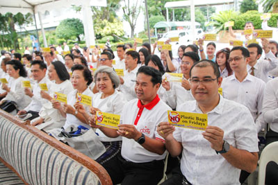 “วันนี้ผมมีความยินดีที่ชาวรามคำแหงทุกฝ่ายให้ความสำคัญและตระหนักถึงปัญหา ที่มาจากขยะประเภทนี้ และมีความตั้งใจร่วมกันที่จะลดปริมาณการใช้และทิ้งขยะพลาสติกภายใน มหาวิทยาลัย รวมถึงพื้นที่สาธารณะอื่นๆ อย่างจริงจัง